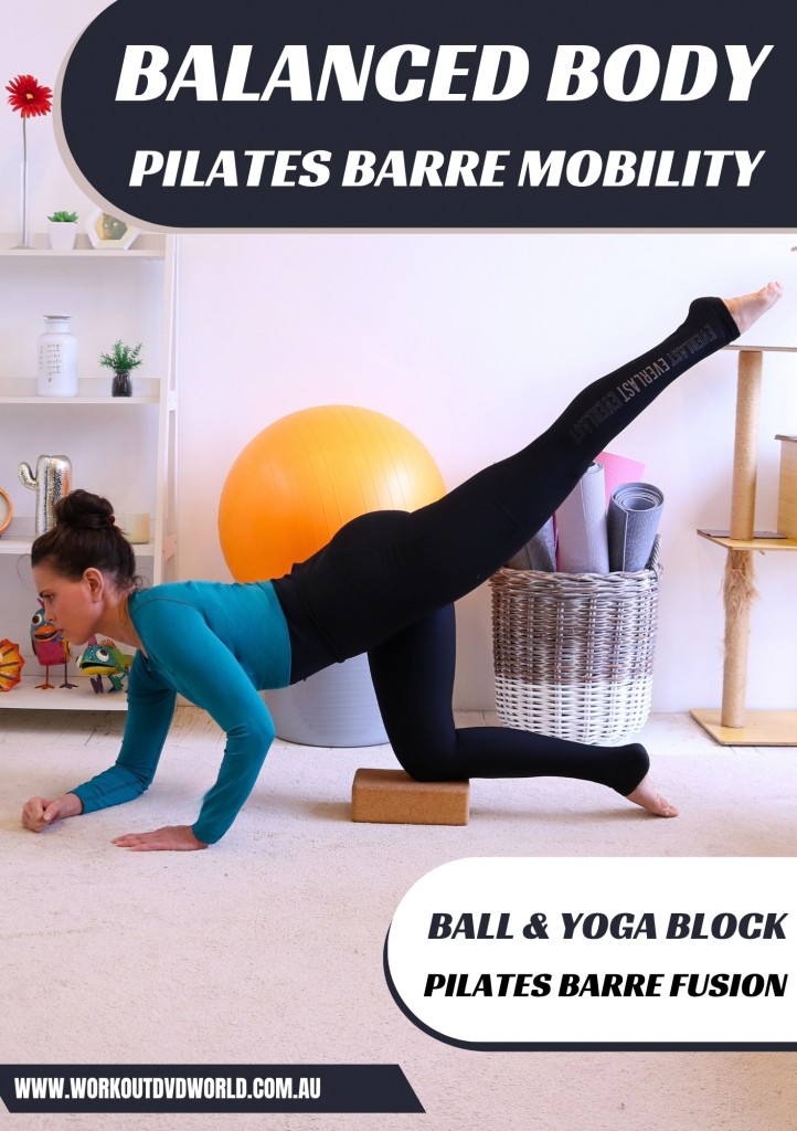 Perfect for at-home fitness using minimal equipment — just a yoga block, Pilates ball, light weights, and a mat.